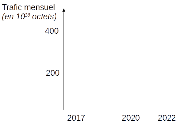 c. En 2022, ce nombre était de \(396*10^9\) To. Placer ce nombre sur le graphique suivant, ainsi que ceux correspondant aux années 2017 et 2020.