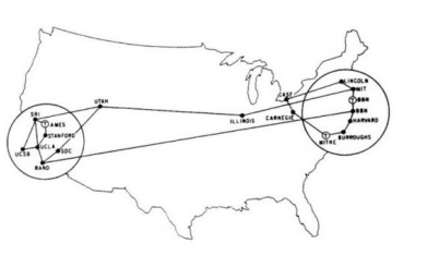 Titre Date (à mettre en Année) Contenu (à copier/coller) Les premiers réseaux informatiques 1969 Les premiers réseaux d’ordinateurs datent de la fin des années 1950 comme le système radar semiautomatique américain SAGE. En 1969, sous l’impulsion de l’informaticien américain Joseph Licklider, naît le réseau Arpanet. Pour la première fois, les données, découpées en paquets, transitent grâce à un protocole de communication, c’est-à-dire un ensemble de règles qui régissent les échanges. paquets et protocoles sont à la base d’Internet, ce qui fait d’Arpanet son ancêtre. Pour celui-ci, vous allez ajouter une image du réseau ARPANET. La télécharger en :